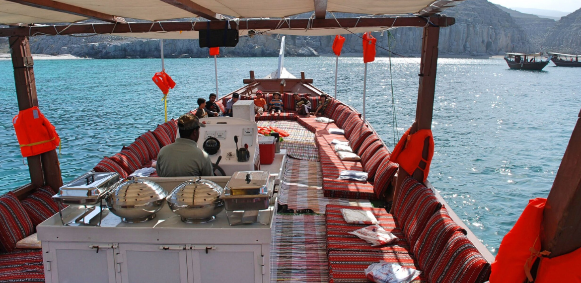 - Board a beautifully decorated Omani dhow, adorned with Bedouin-style carpets and plush pillows, for a truly immersive experience.